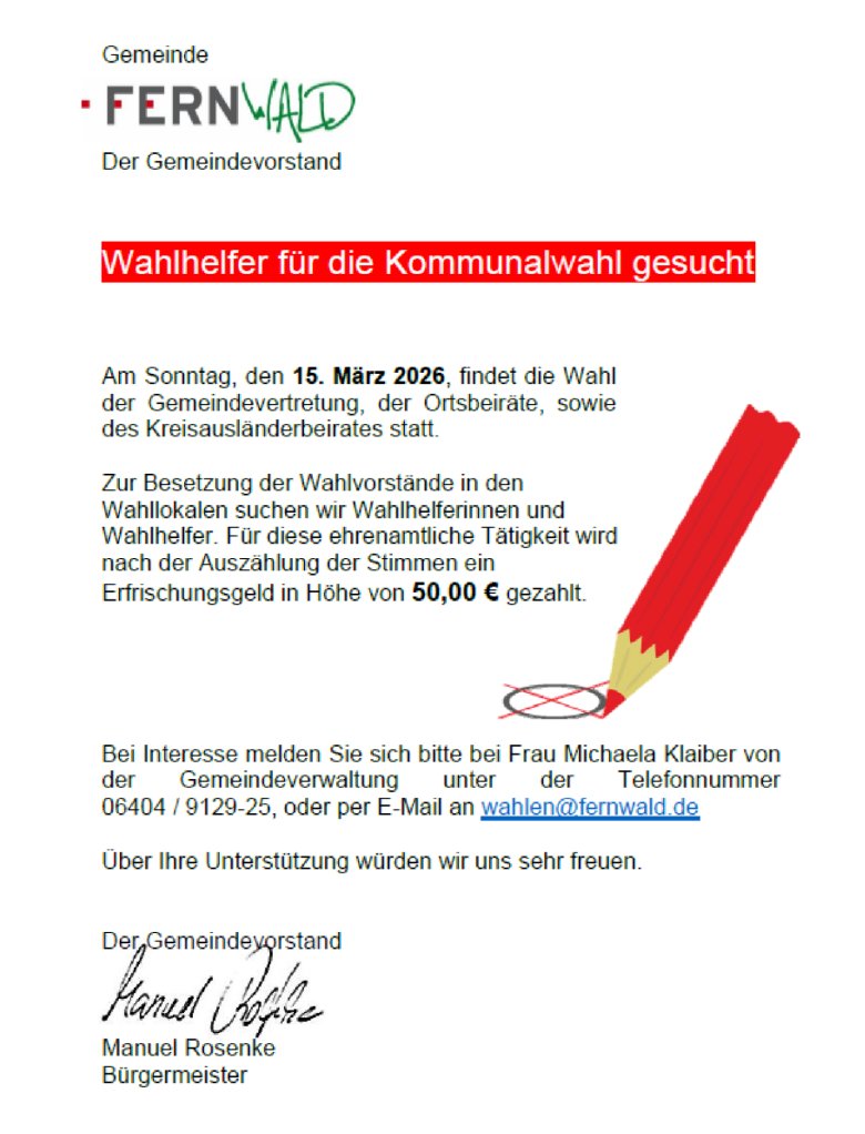 Wahlhelfer für die Kommunalwahl 2026 gesucht