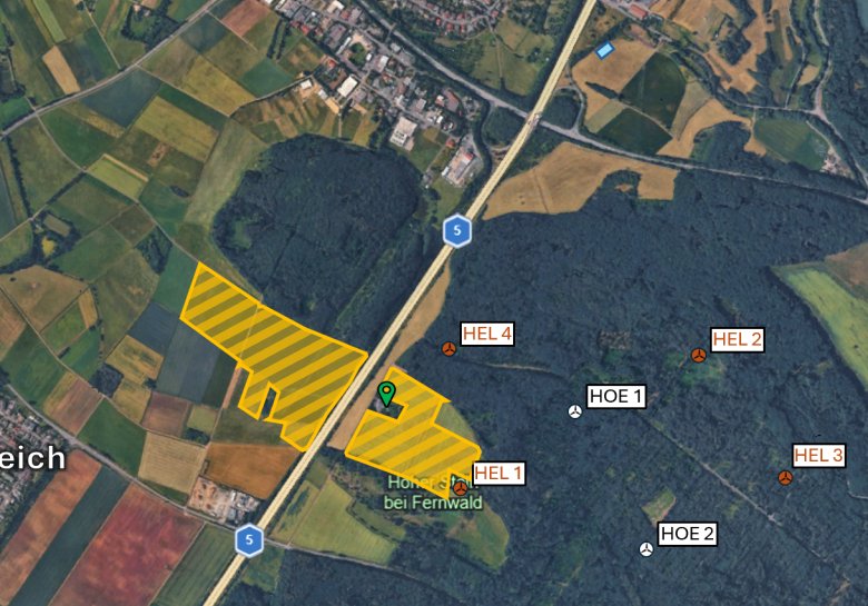 Die Anlage auf Fernwalder Gemarkung steht dabei auf einem Grundstück der Stadt Pohlheim. Für die geplante Erweiterung im Bereich Helgenwald waren zunächst drei weitere Anlagen vorgesehen (zwei auf Licher Flächen, eine auf einem Privatgrundstück in Fernwald).