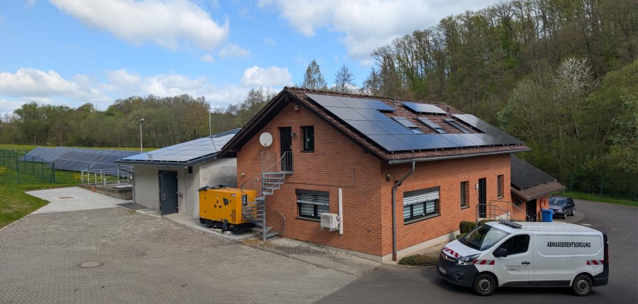 Auf der Kläranlage Fernwald wurde die Eigenstromversorgung weiter ausgebaut: Auf dem Dach des neuen Rechengebäudes sowie auf einem Bestandsgebäude wurde eine Photovoltaikanlage mit einer Leistung von 41 kWp installiert. Ergänzt wird die Anlage durch einen Batteriespeicher mit einer Kapazität von 46 kWh.